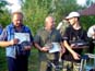 W sobotę 19 sierpnia 2006 roku odbyły się kolejne zawody. Ja niestety nie mogłem byc. Fotografowała moja żona Jola. Pierwsze miejsce i rower górski zdobył kolega po prawej stronie. Niestety nie znam jego nazwiska. Może ktoś je podeśle? Drugie miejsce kolega w środku, a trzecie Janek. Koło Janka wędkuję od czasu do czasu. Gratuluję wszystkim bardzo dobrych wyników!!!